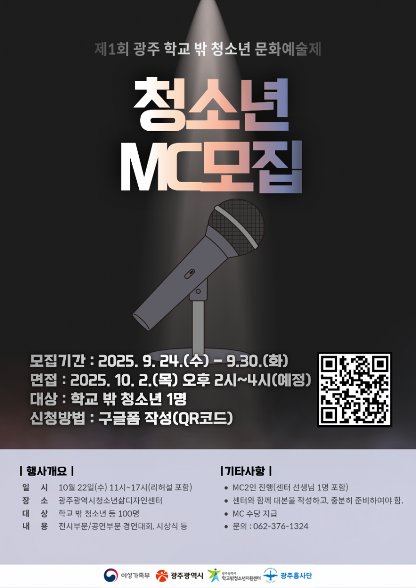 공지사항 제1회 광주 학교 밖 청소년 문화예술제 청소년MC 모집 안내
