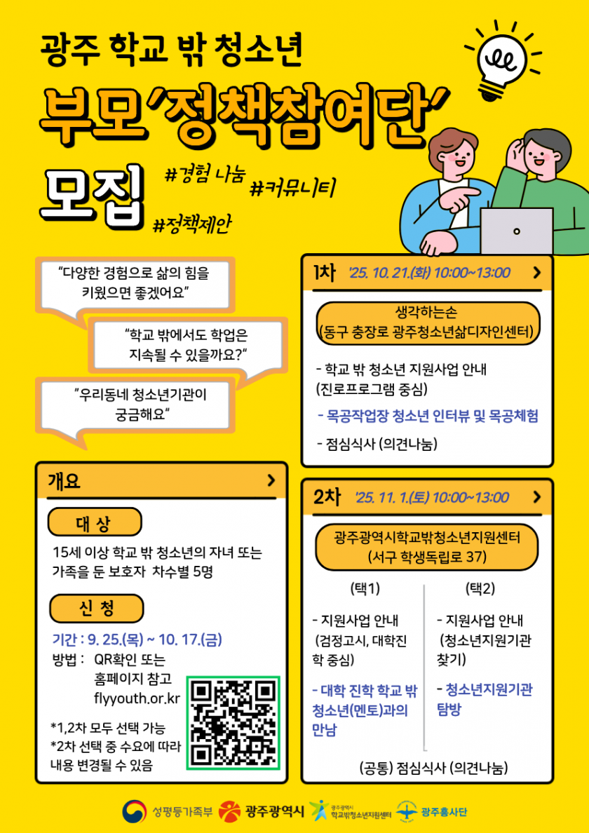 공지사항 광주 학교 밖 청소년 부모 정책 참여단 모집