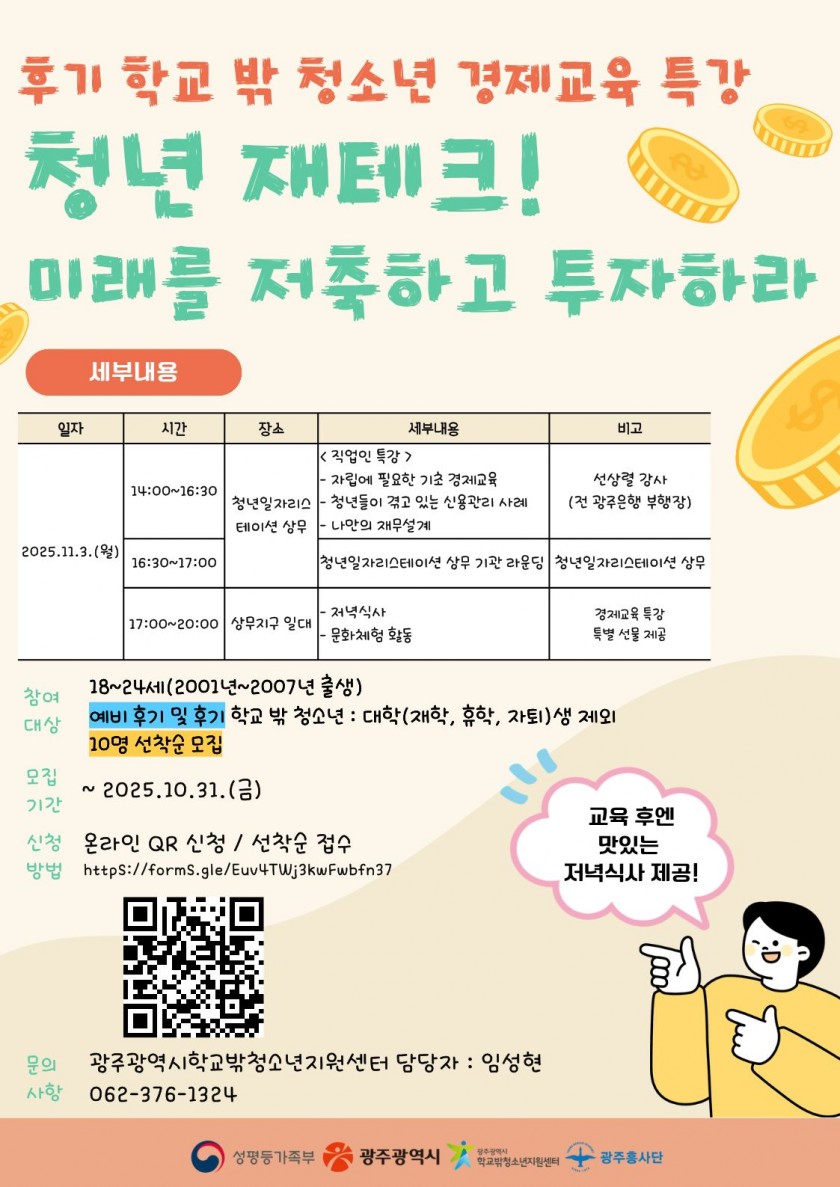 홍보 후기 학교 밖 청소년 경제교육 특강 <청년 재테크! 미래를 저축하고 투자하라> 참여자 모집