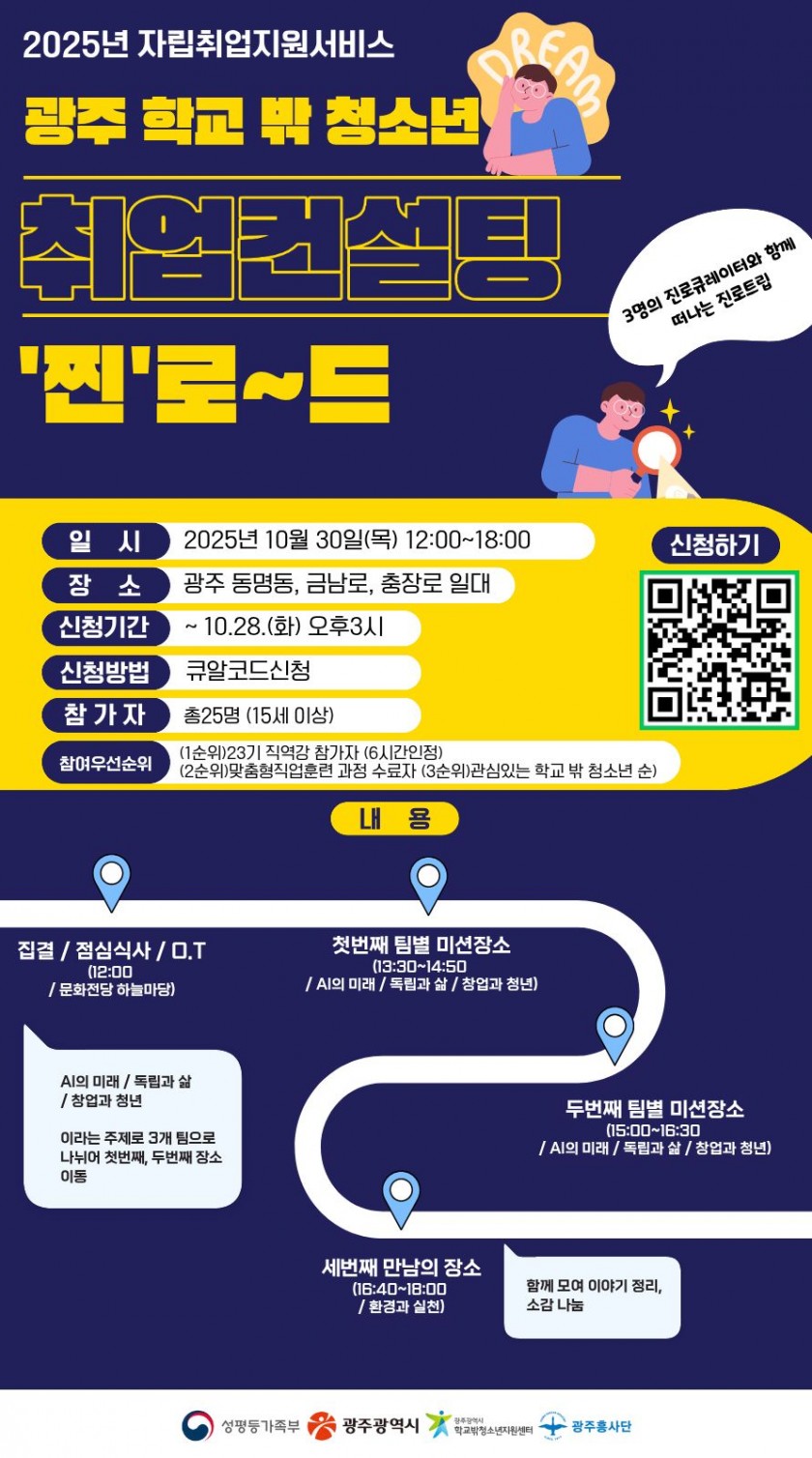 광주 학교 밖 청소년 취업컨설팅 '찐 로~드' 안내