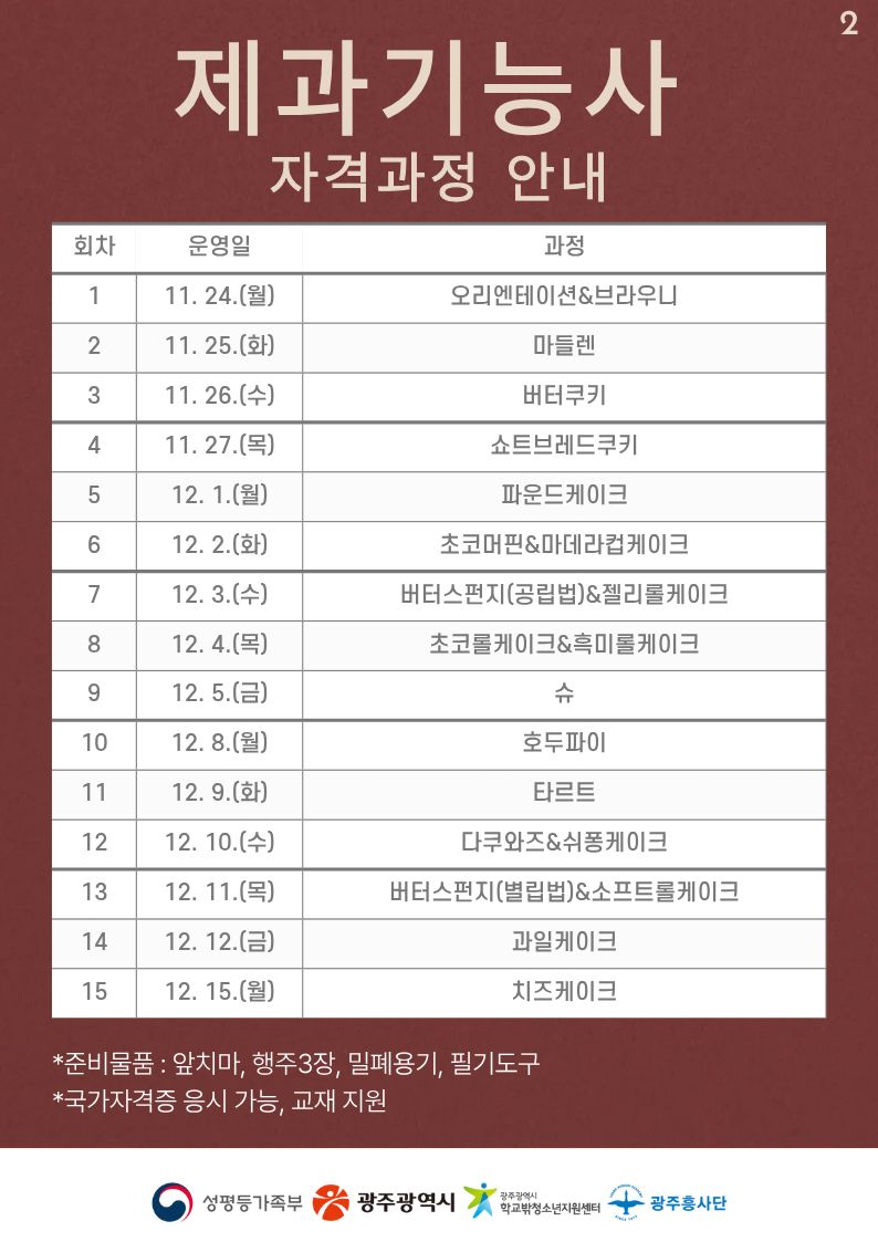 공지사항 맞춤형직업훈련_제과기능사 안내문