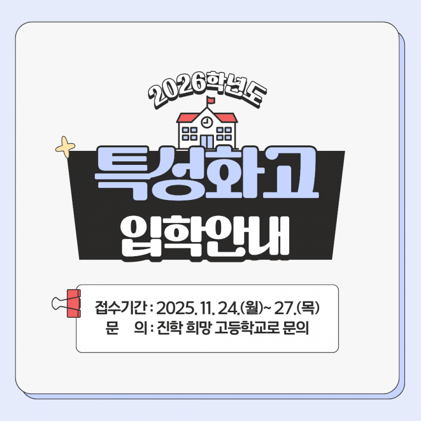 공지사항 2026학년도 특성화고 입학 원서 제출 기간 안내
