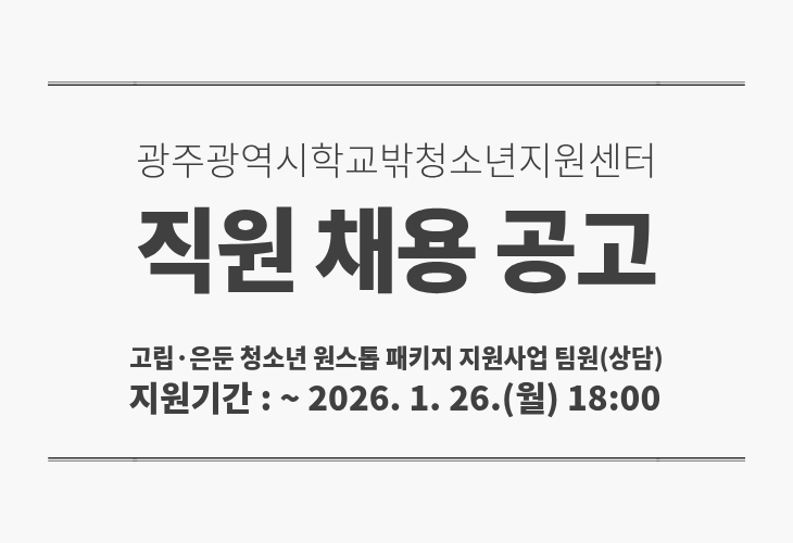 공지사항 [공고] 광주광역시학교밖청소년지원센터 인력 채용 공고(고립·은둔청소년 원스톱 패키지 지원사업)