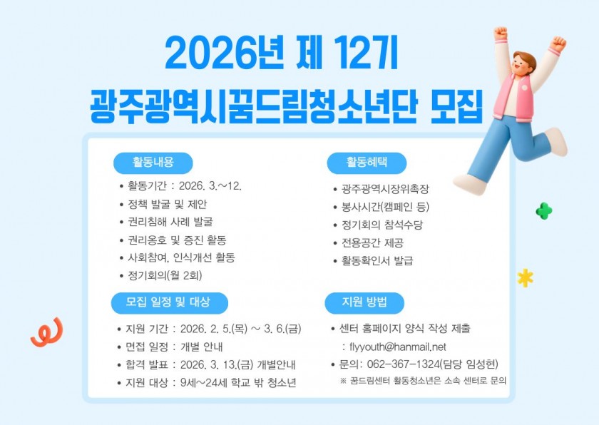 ✨2026년 제12기 광주광역시 꿈드림청소년단 모집 안내✨