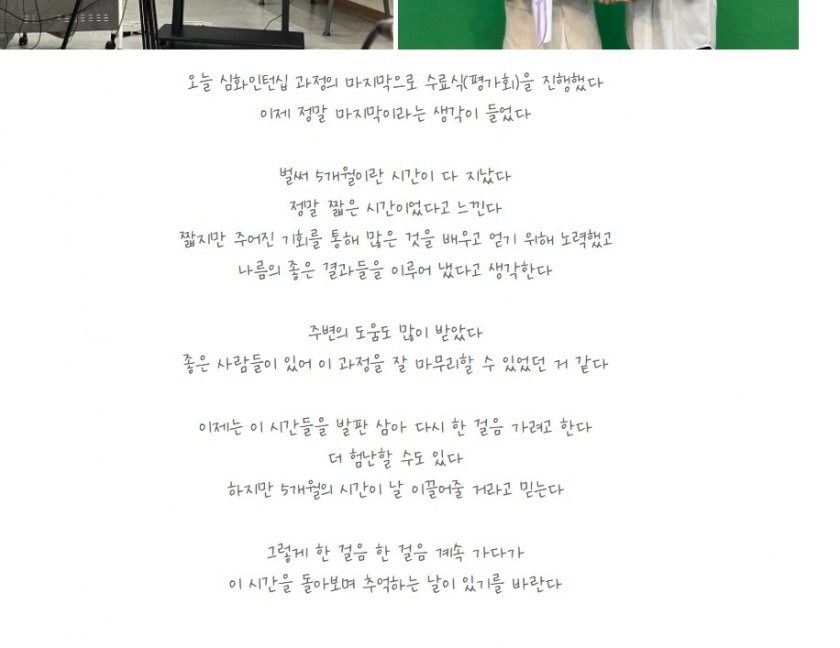 5개월이라는 시간 동안 해당 훈련받았던 작업장으로 취업해 직원으로써의 책임감을 갖는 시간 이 오늘로 마무리 되었습니다.