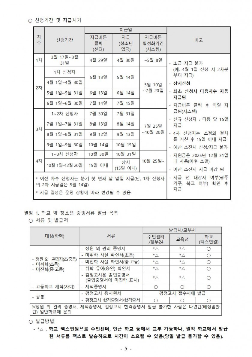 공지사항 [접수마감] 2025 광주 학교 밖 청소년 교육활동비 안내
