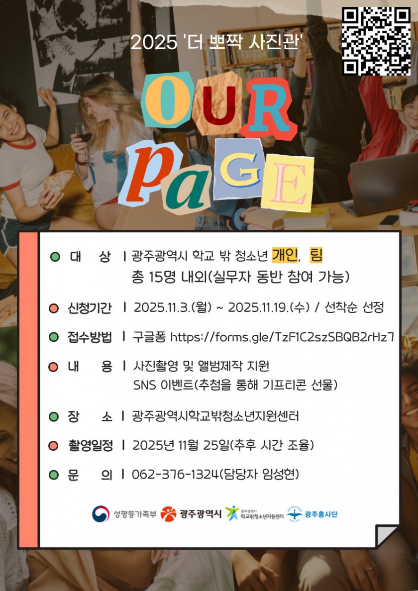 광주광역시학교밖청소년지원센터에서 「2025 ‘더 뽀짝’ 사진관」 ‘OUR PAGE’ 참여자를