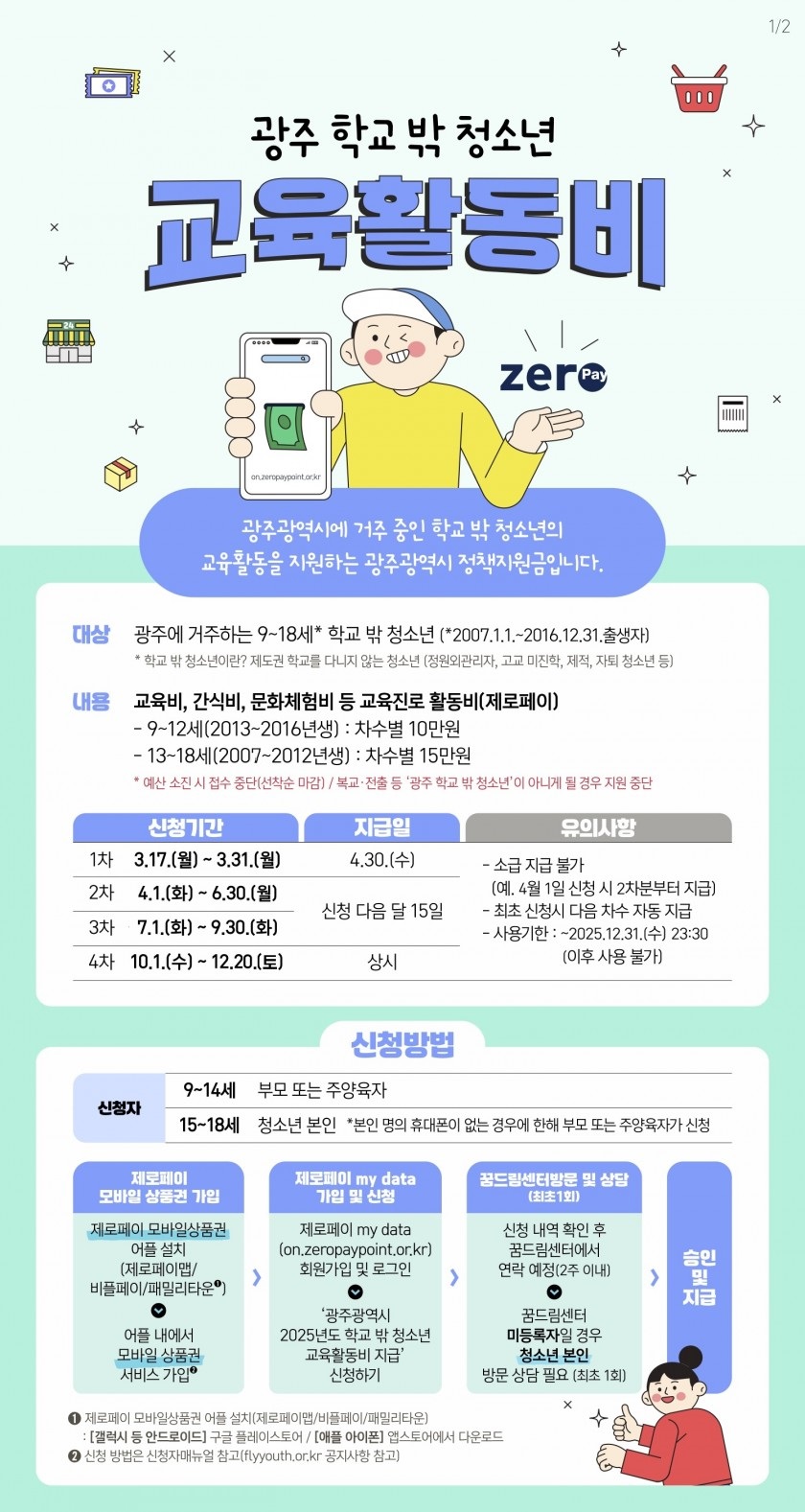 학교 밖 청소년을 위한 교육활동비를 지급합니다.
